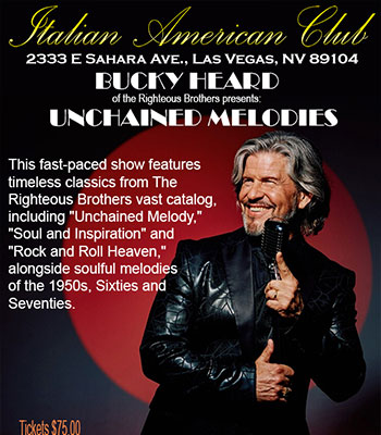 This fast-paced show features timeless classics from The Righteous Brothers vast catalog, including "Unchained Melody," "Soul and Inspiration" and "Rock and Roll Heaven," alongside soulful melodies of the 1950s, Sixties and Seventies. From Roy Orbison and Elvis, to Journey and Elton John, and beyond, Bucky Heard holds audiences spellbound as they relive golden memories from their lives. A real crowd pleaser!